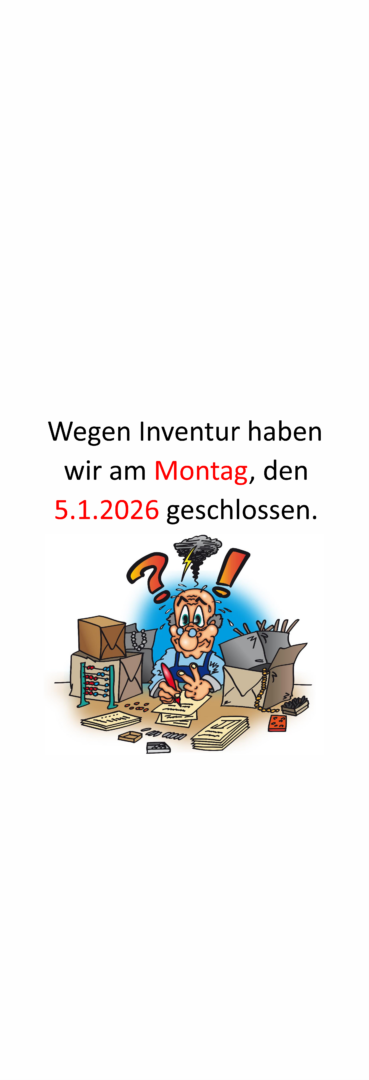 Zeige grösseres Bild Wegen Inventur geschlossen. Sehr geehrte Kunden am 5.1.2026 haben wir wegen unserer Inventur geschlossen. F.Peham2025-12-31T12:57:14+01:00